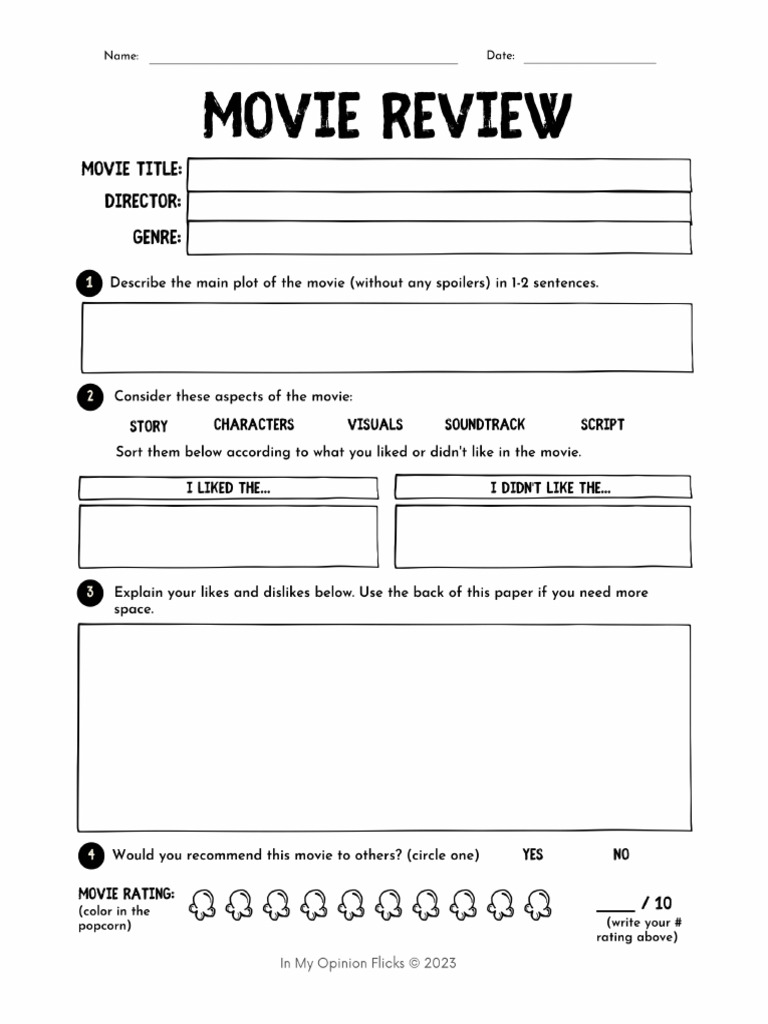 Movie Review Template for Kids and Teens (Free PDF Printables)