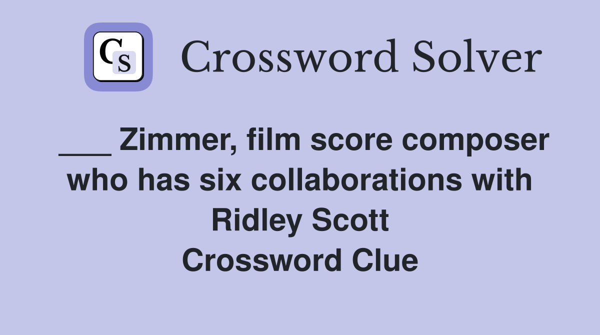 Zimmer film score composer (4) Crossword Clue Answers Crossword Solver