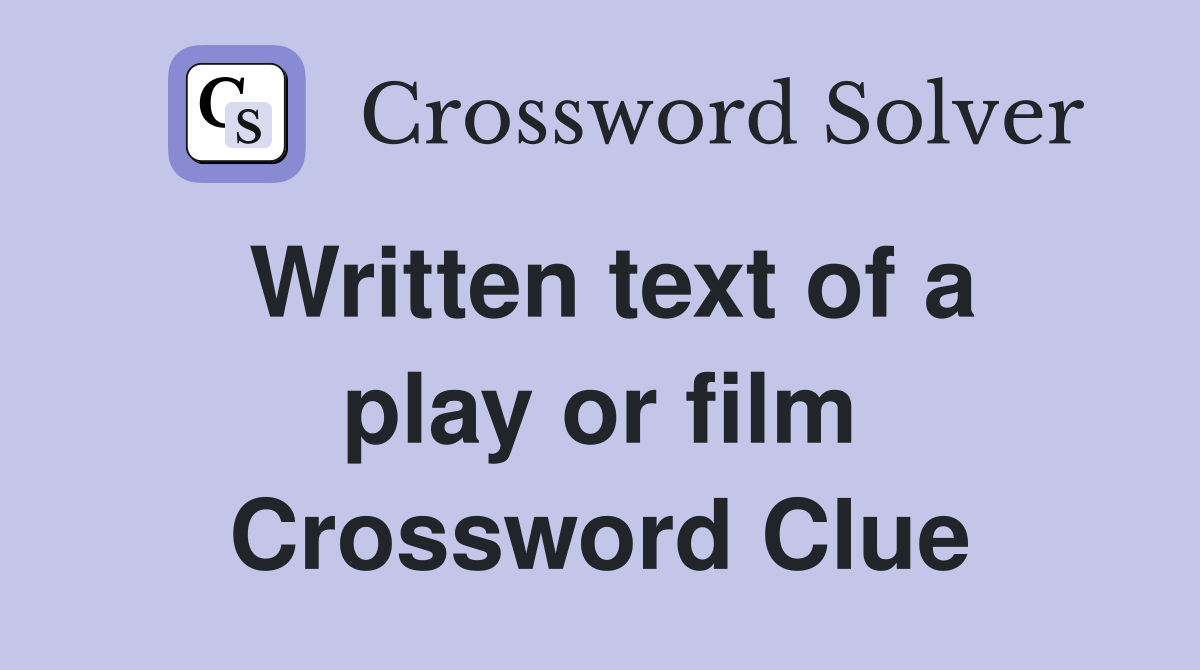 Written text of a play or film Crossword Clue Answers Crossword Solver