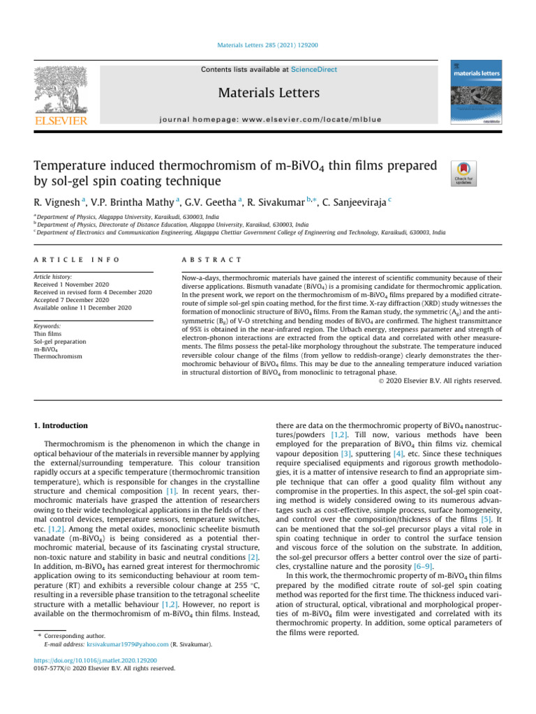 Temperature Induced Thermochromism of M BiVO4 Thin Films Prepared by