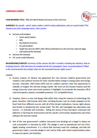 Environmental Justice Foundation Draft Film Treatment Template