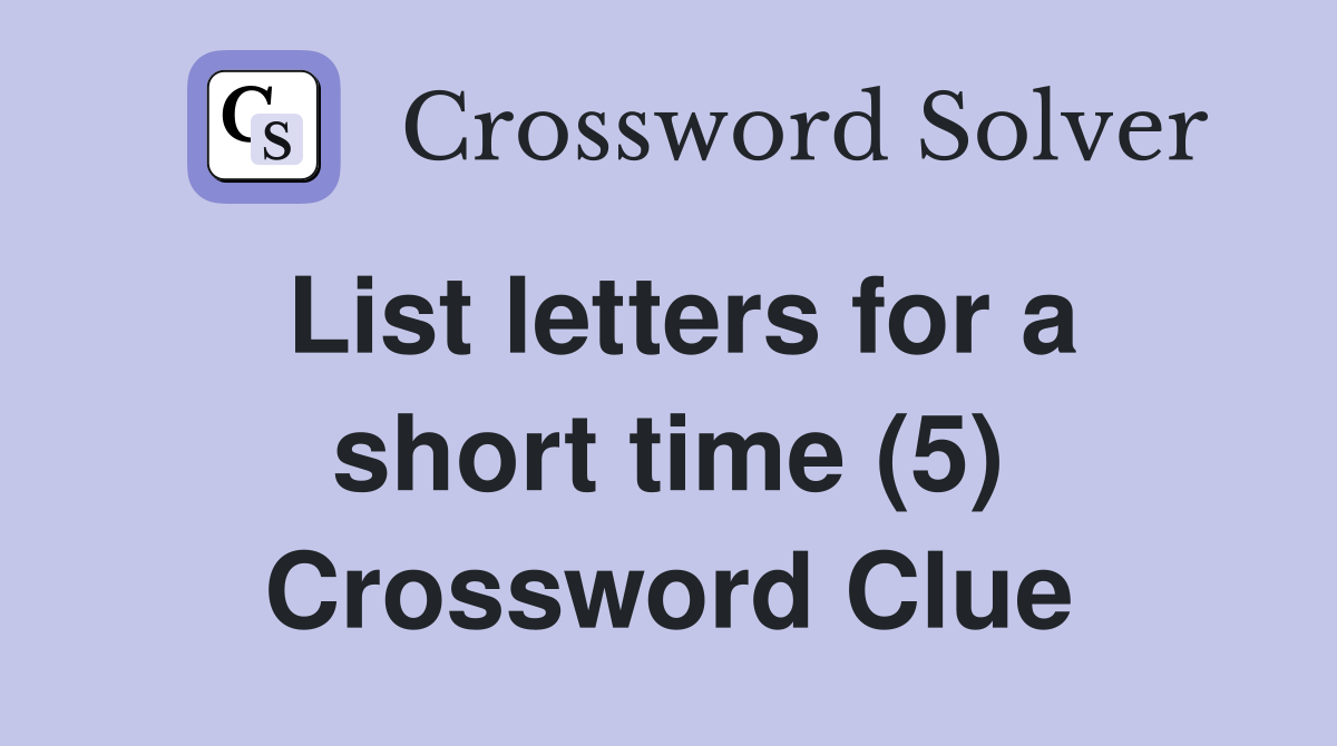 List letters for a short time (5) Crossword Clue Answers Crossword