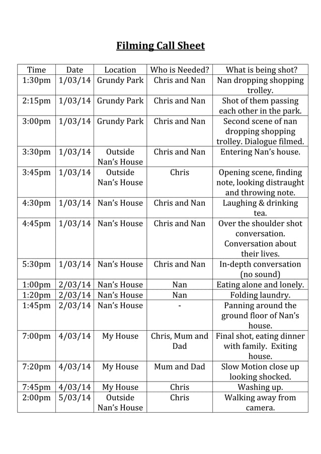 Here are some of the images for Filming Call Sheet Template that we found in our website database.