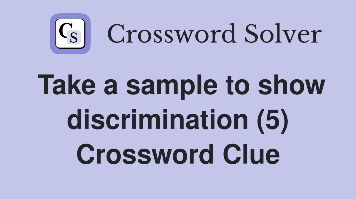 Take a sample to show discrimination (5) Crossword Clue Answers