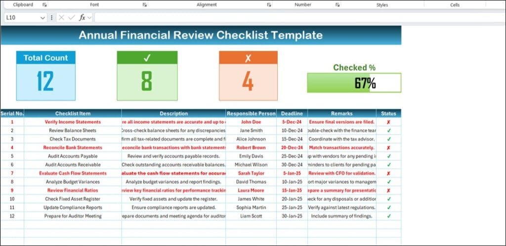 Annual Financial Review Checklist Template PK: An Excel Expert