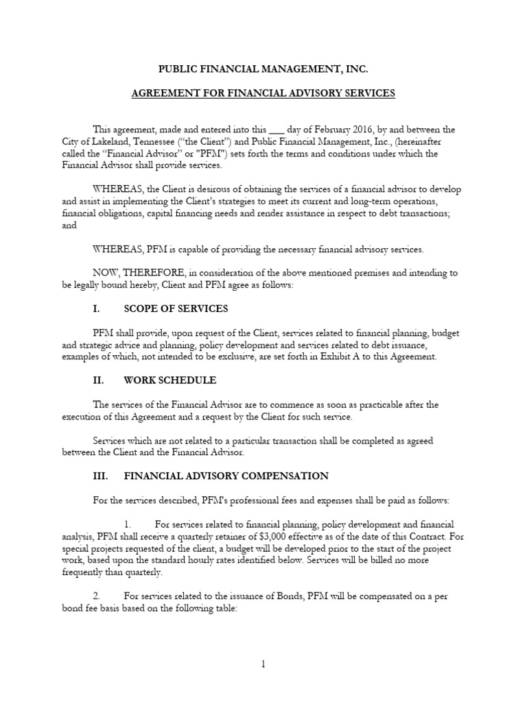Public Financial Advisory Services Agreement PDF Bonds (Finance) Debt