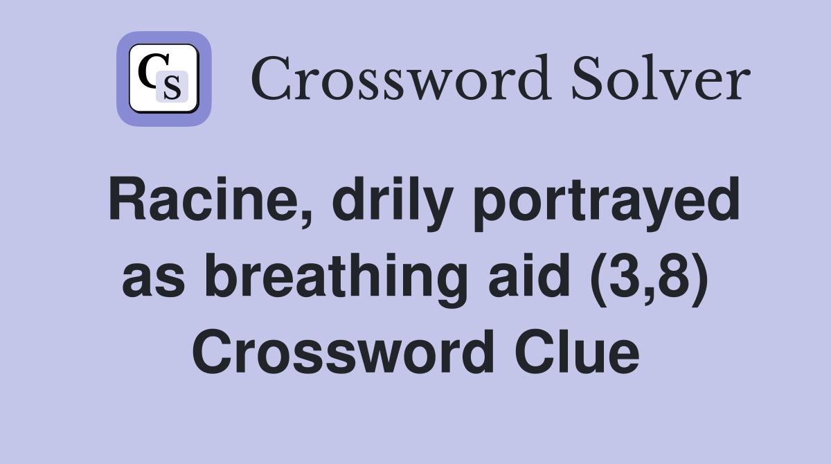 Racine drily portrayed as breathing aid (3 8) Crossword Clue Answers