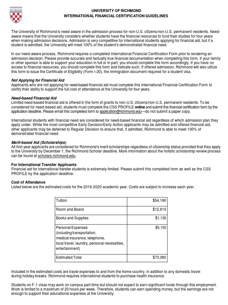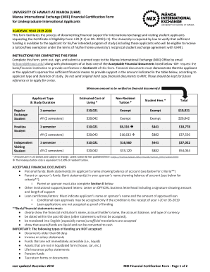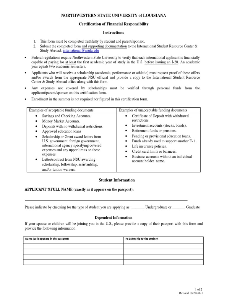 Fillable Online INTERNATIONAL STUDENT FINANCIAL CERTIFICATION FORM