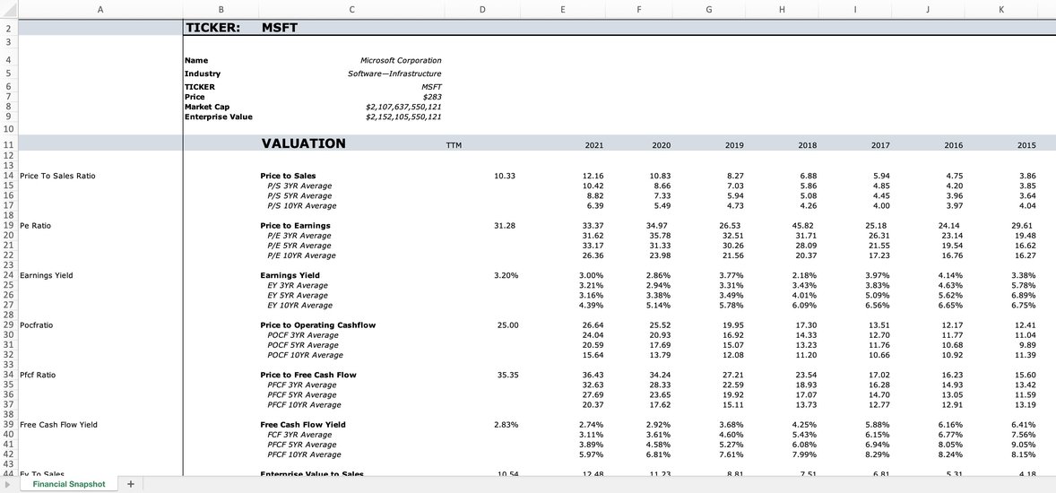 Annual Financial Snapshot Template MarketXLS Template
