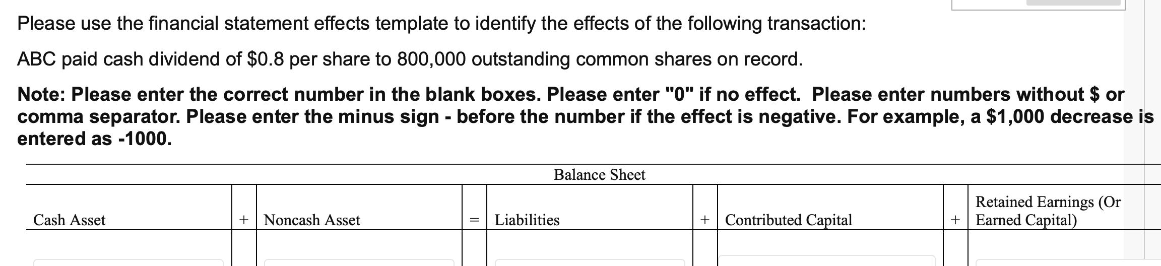 Solved Financial Statement Effects Template Balance Sheet Chegg com