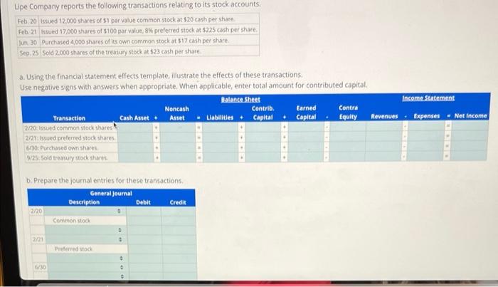 Solved a Using the financial statement effects template Chegg com