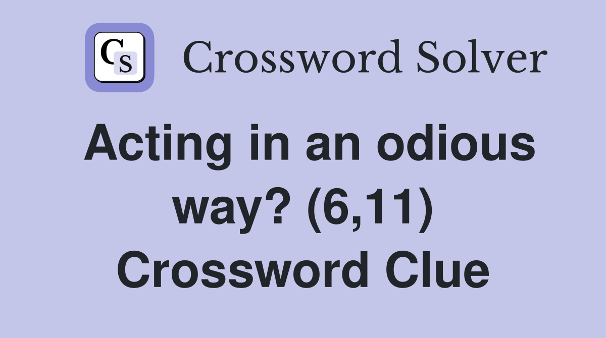 Acting in an odious way? (6 11) Crossword Clue Answers Crossword Solver