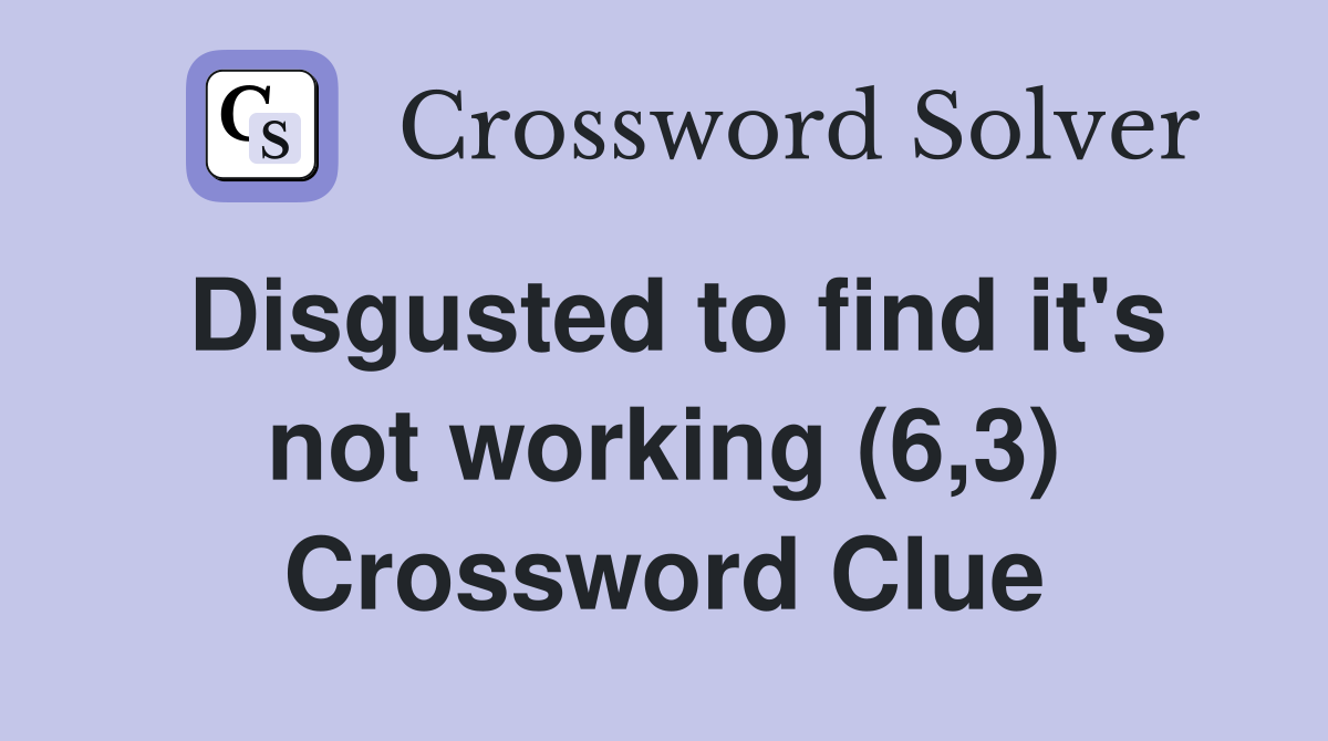 Disgusted to find it s not working (6 3) Crossword Clue Answers