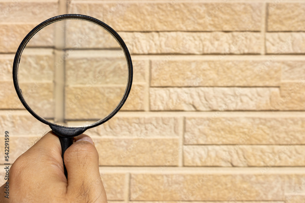 外壁のコーキングを虫眼鏡で点検するイメージ Stock Photo Adobe Stock