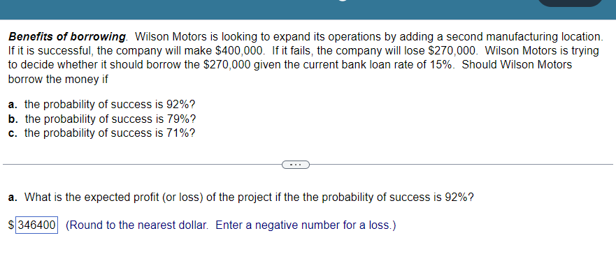 Solved Benefits of borrowing Wilson Motors is looking to Chegg com