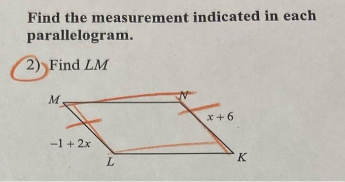 Find the measurement indicated in each parallelogram Find mK brainly com