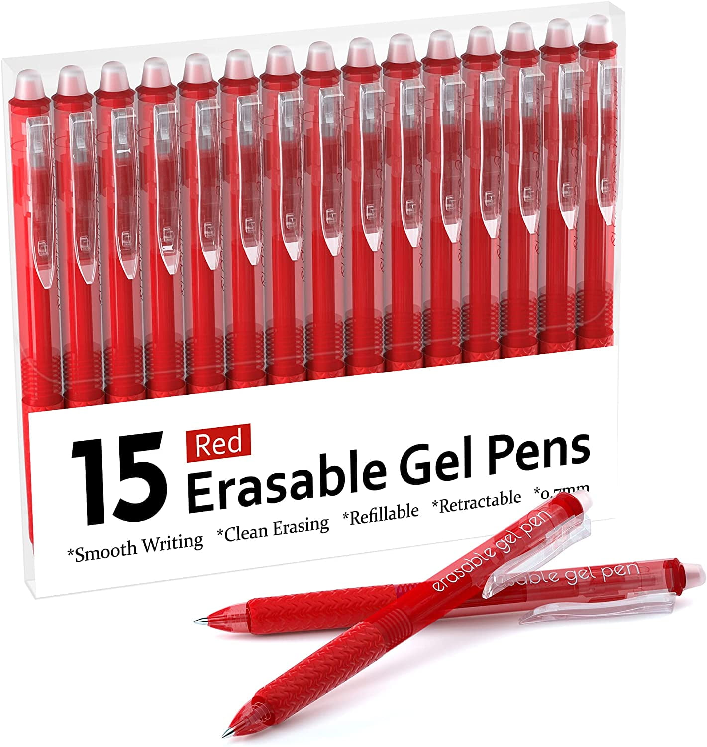 Erasable Gel Pens 15 Pack Red Retractable Erasable Pens Clicker Fine