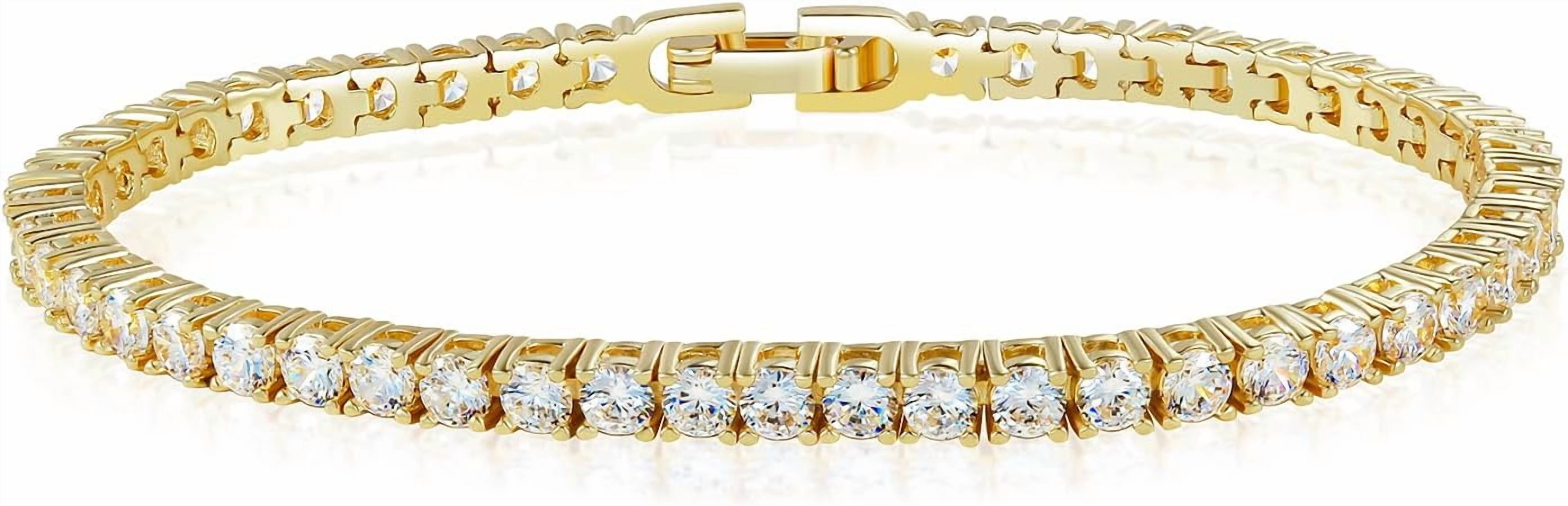 14K Fine White/Yellow Gold Plated Cubic Zirconia Classic Tennis
