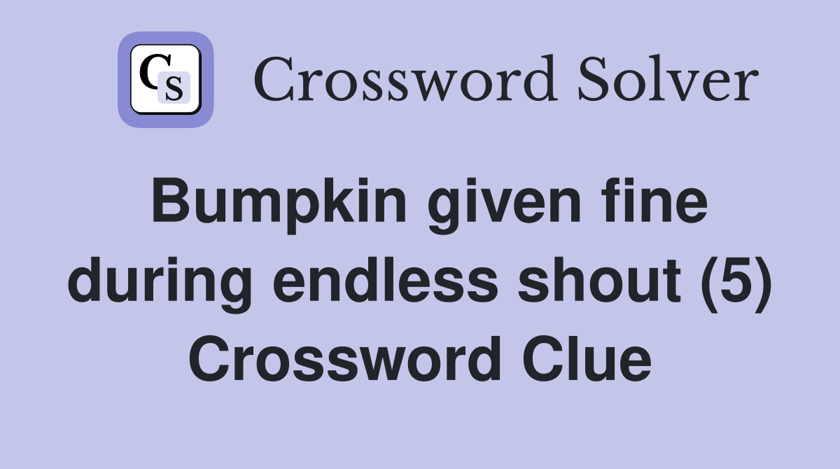 Bumpkin given fine during endless shout (5) Crossword Clue Answers