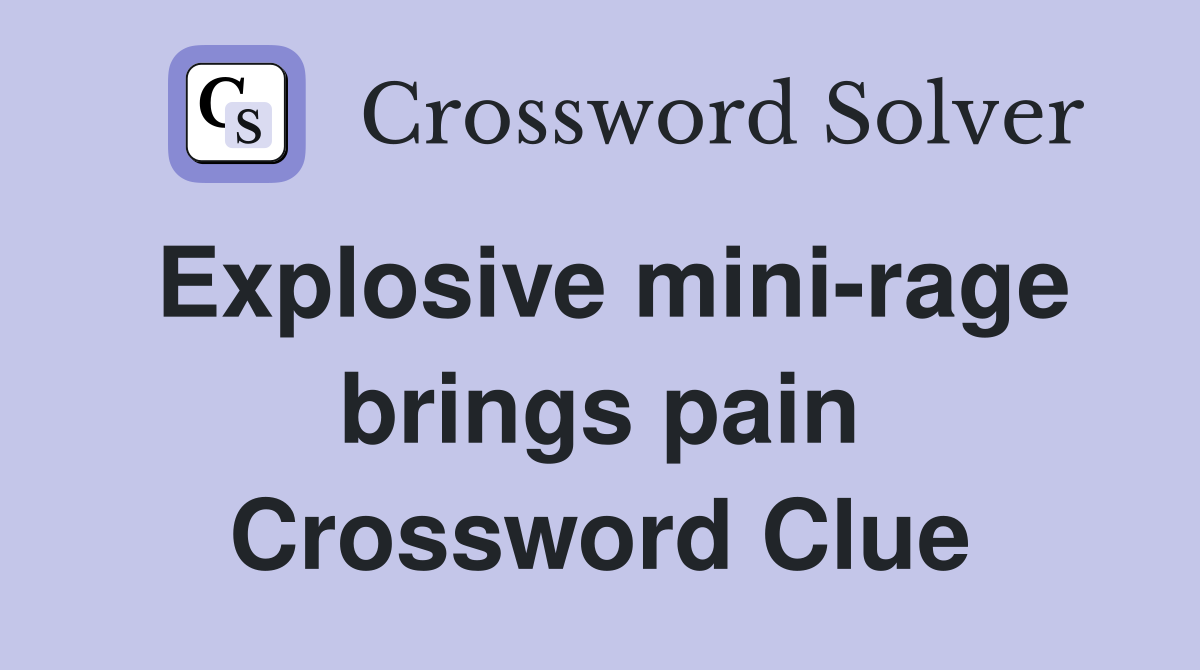 Explosive mini rage brings pain Crossword Clue Answers Crossword Solver