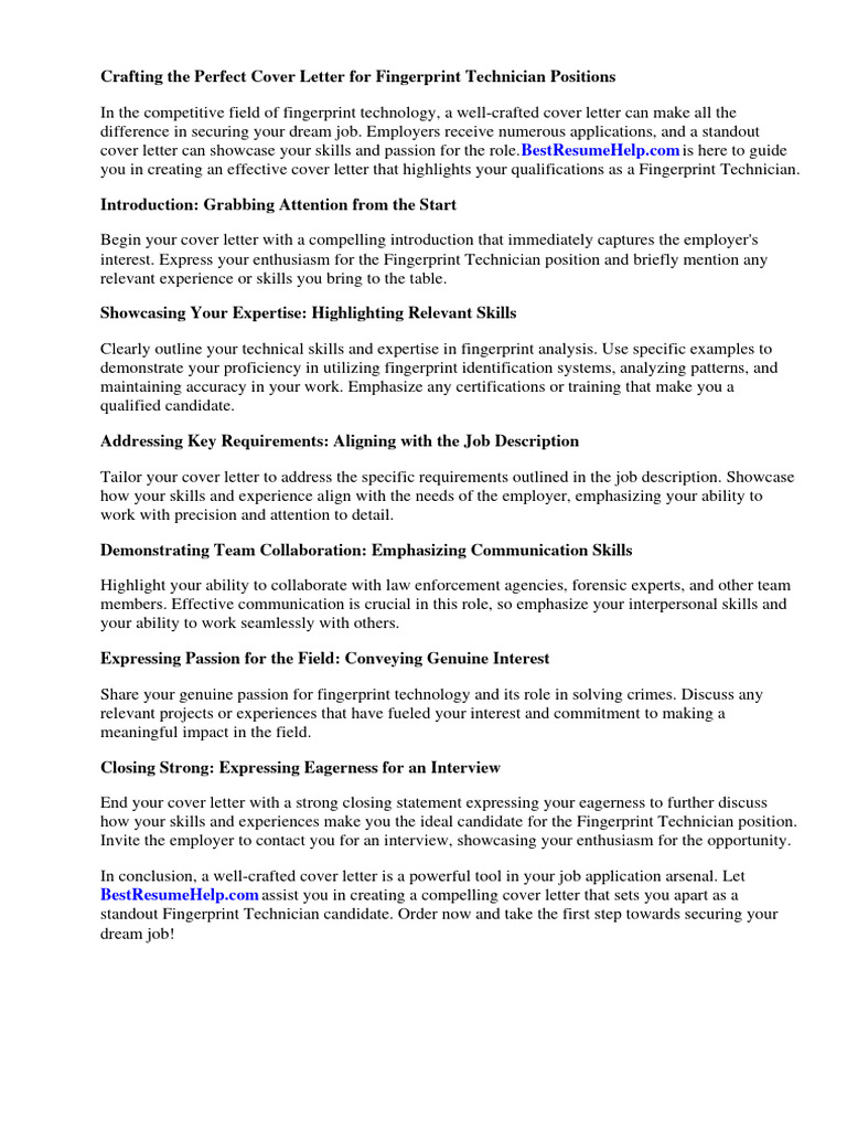 Cover Letter For Fingerprint Technician PDF Fingerprint Résumé