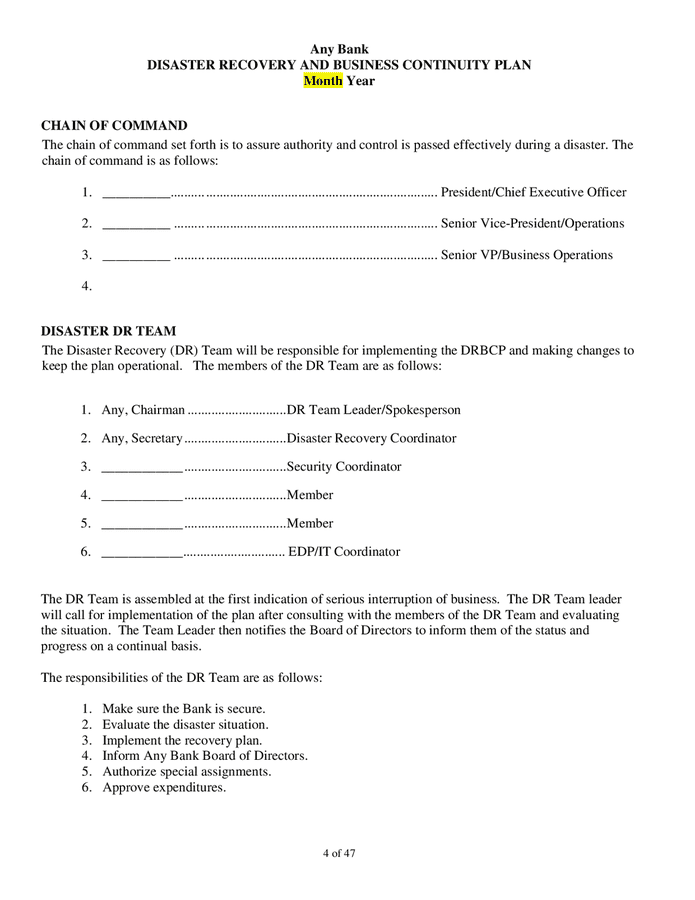 Bank disaster recovery and continuity plan template in Word and Pdf