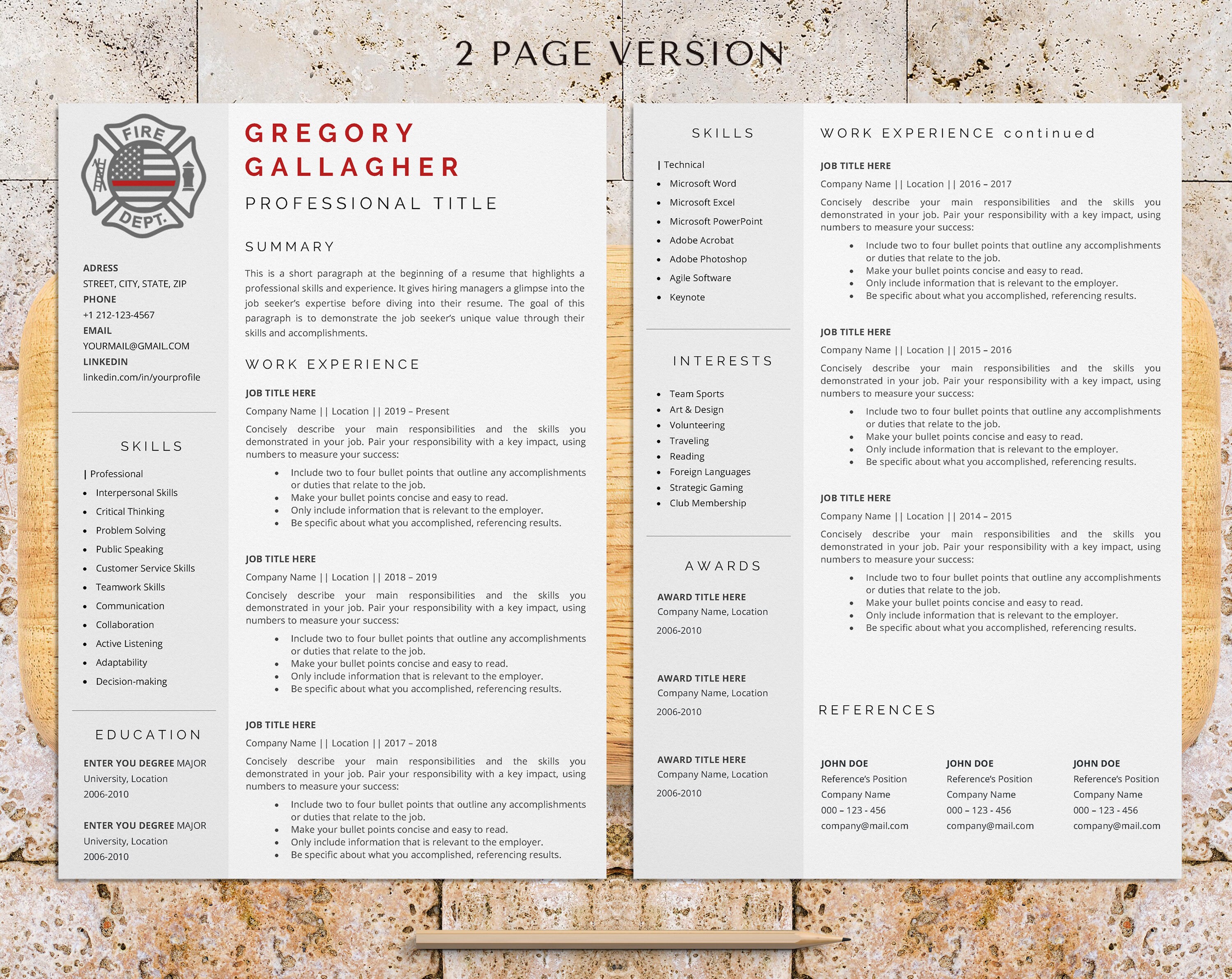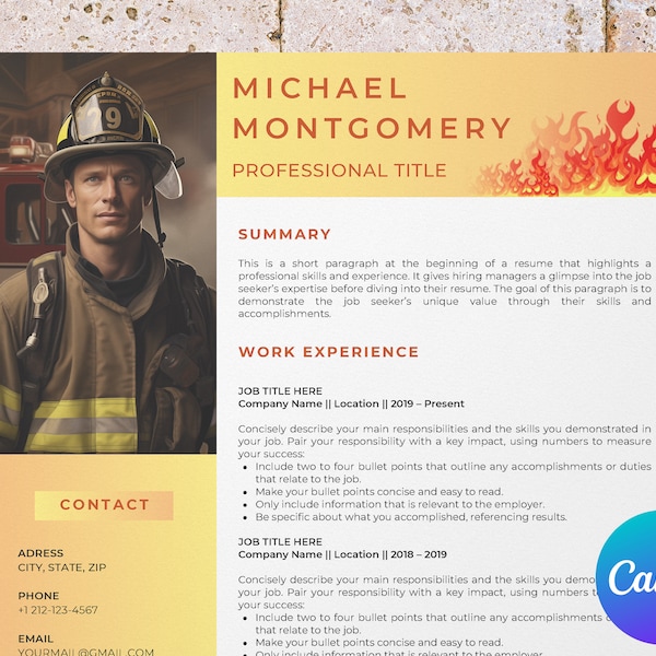 Fire Chief Resume Template Etsy