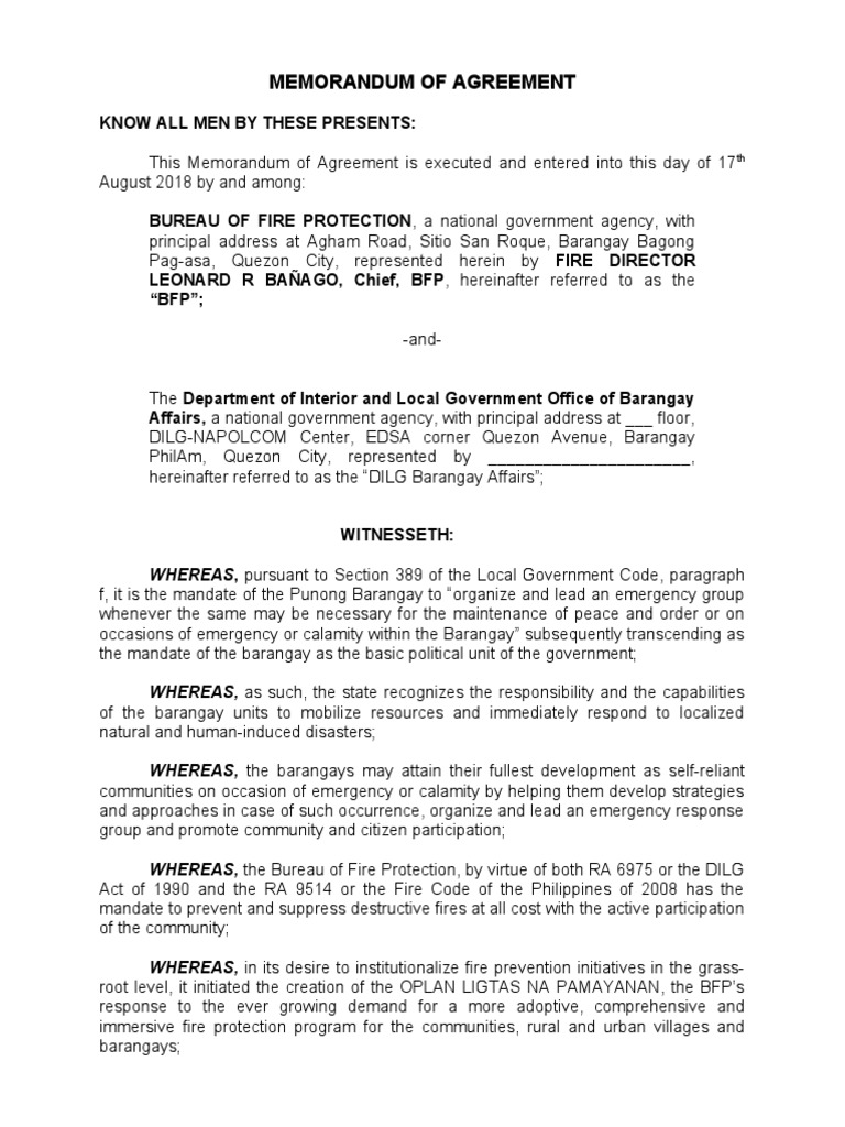 Memorandum of Agreement PDF Fire Safety Public Safety