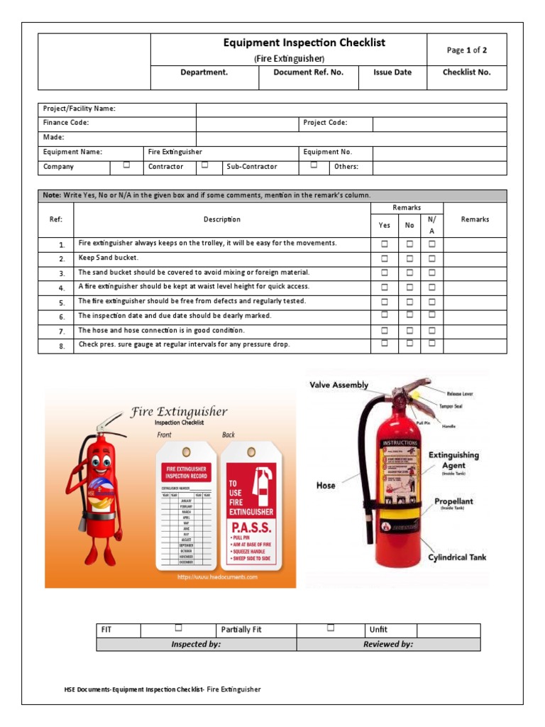 Fire Extinguisher Checklist Fire Safety Inspection Checklist BXXM