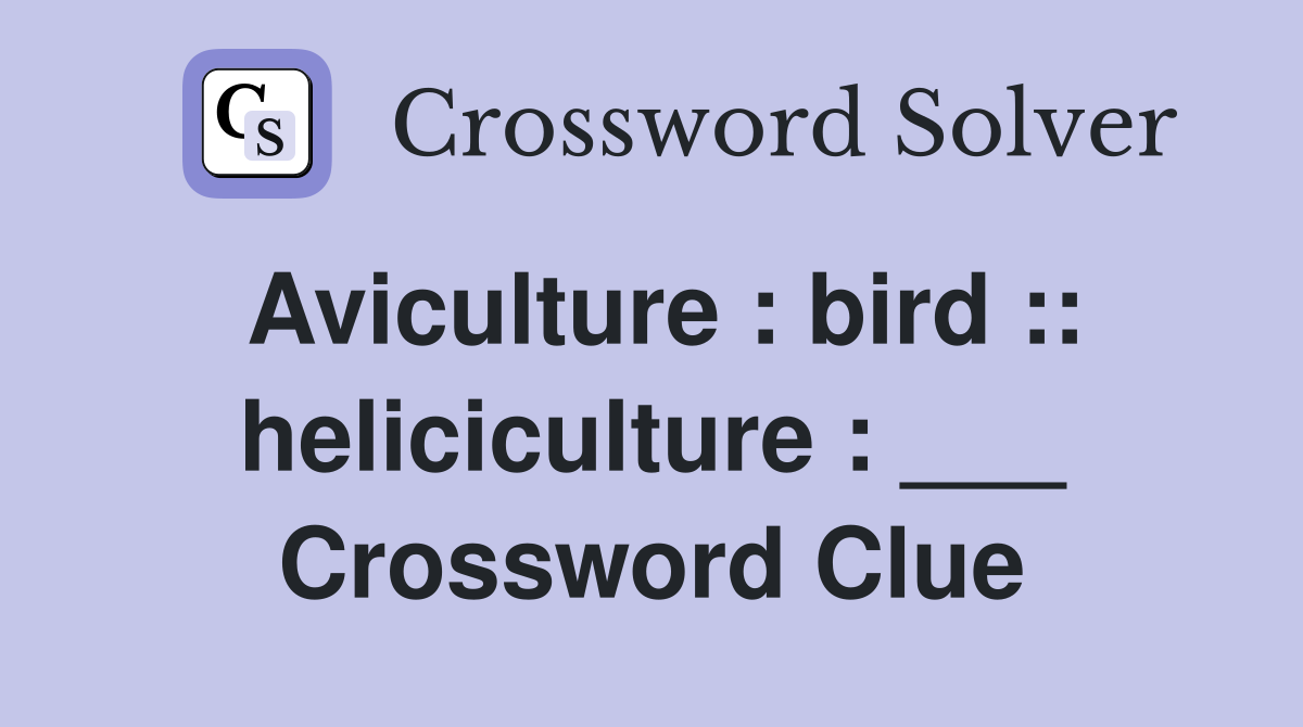 Aviculture : bird :: heliciculture : Crossword Clue Answers
