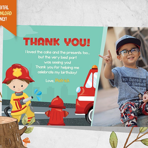 EDITABLE Firefighter Thank You Card Thank You Card Birthday Etsy in