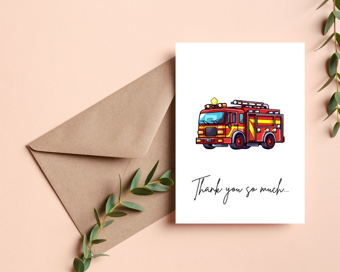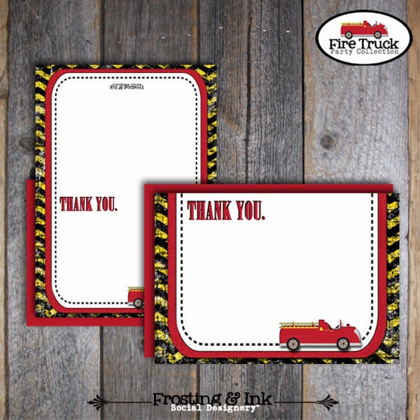 Printable FIRETRUCK THANK You CARD Firetruck Thank You Card