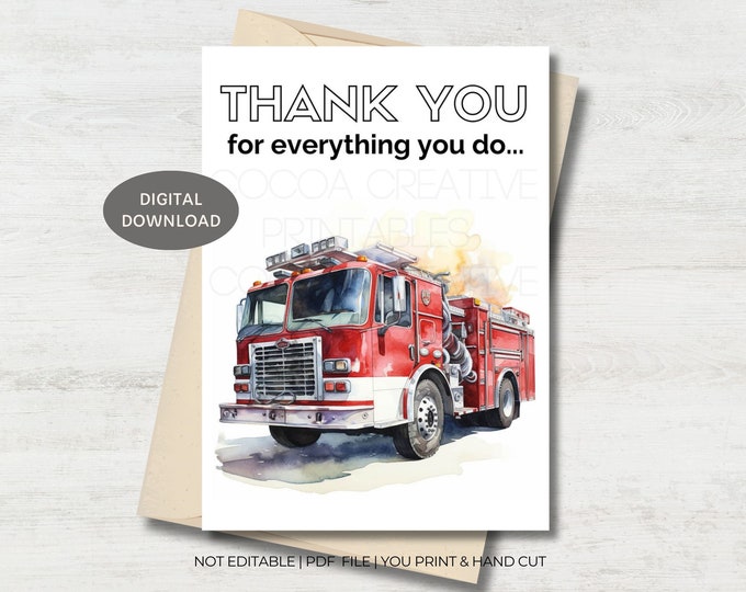 Personalized Firefighter Card Gift for Firefighter PRINTABLE