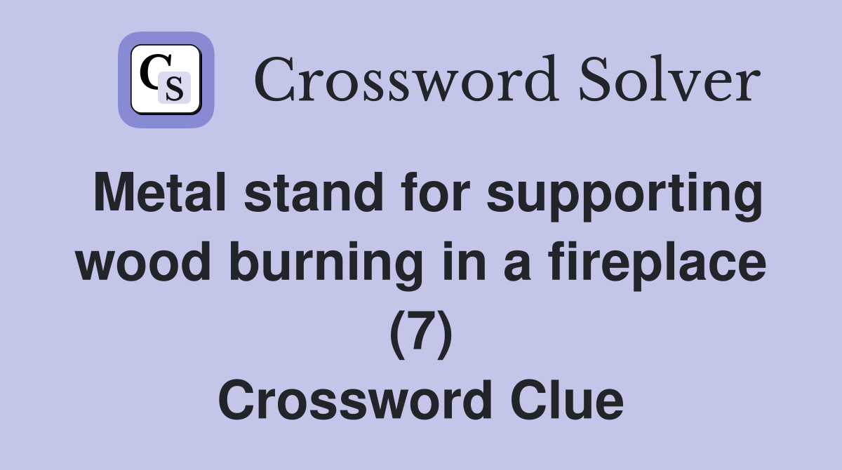 Metal stand for supporting wood burning in a fireplace (7) Crossword