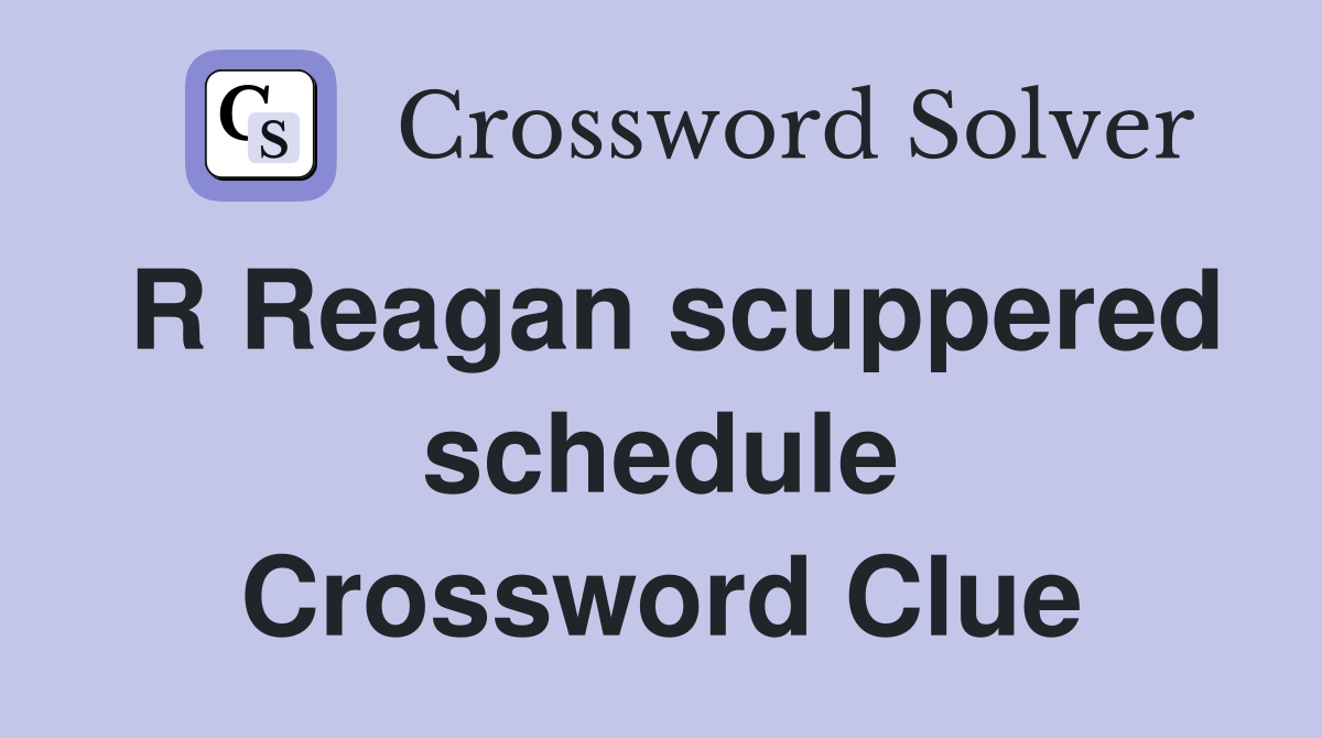 R Reagan scuppered schedule Crossword Clue Answers Crossword Solver
