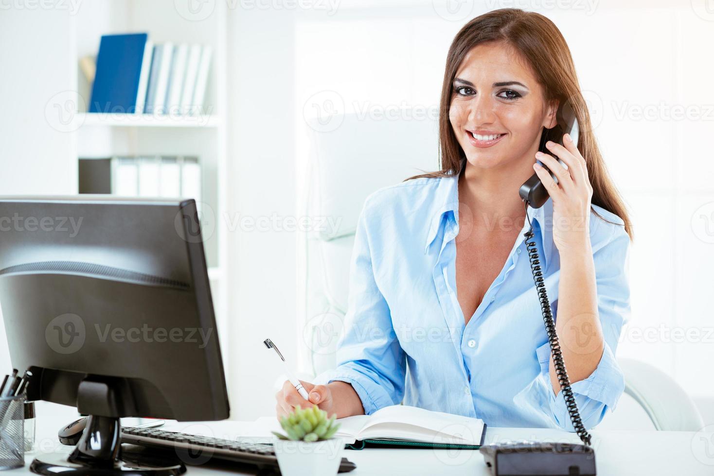 gorgeous office worker talking on telephone Stock Photo Alamy