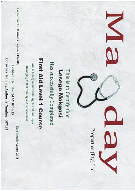 Cpr First Aid Certificate