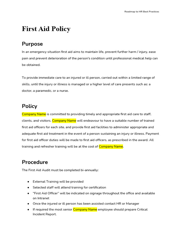 First Aid Policy Template Download Free PDF First Aid Health Sciences