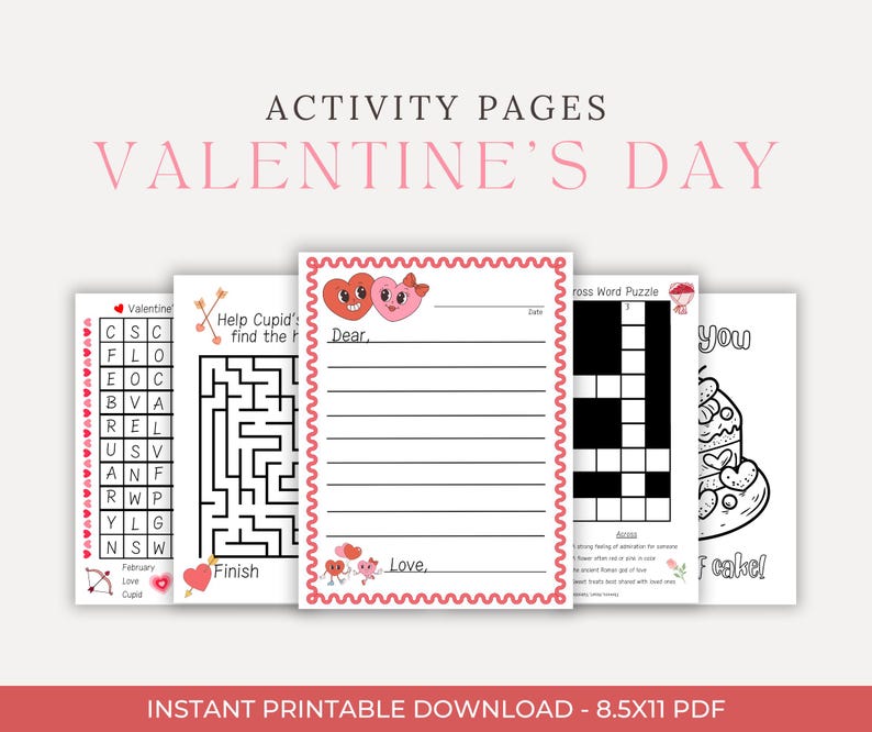 Valentine #39 s Day Coloring Pages Activities Worksheets Crossword Word