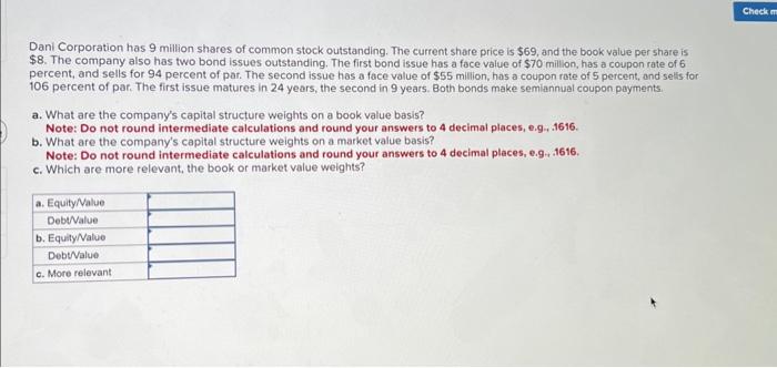 Solved Dani Corporation has 9 million shares of common stock Chegg com