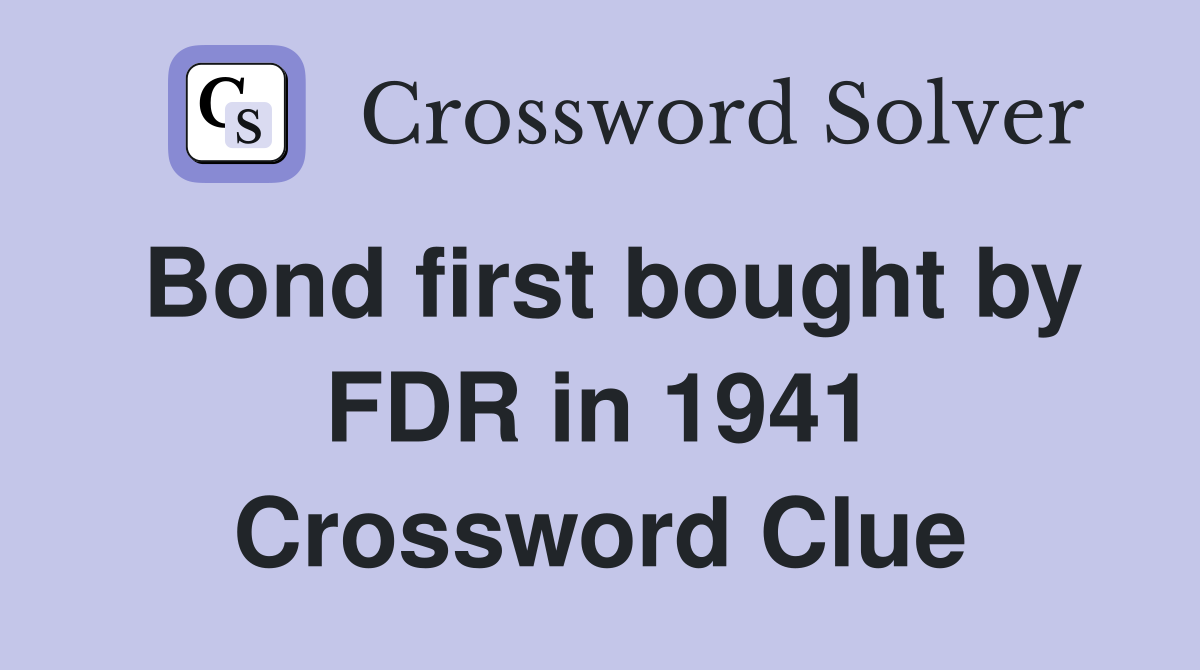 Bond first bought by FDR in 1941 Crossword Clue Answers Crossword