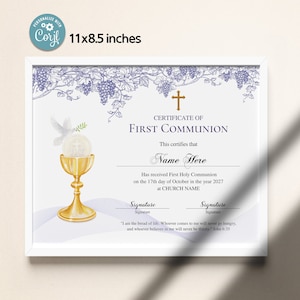 First Communion Editable Certificate religious Editable Certificate