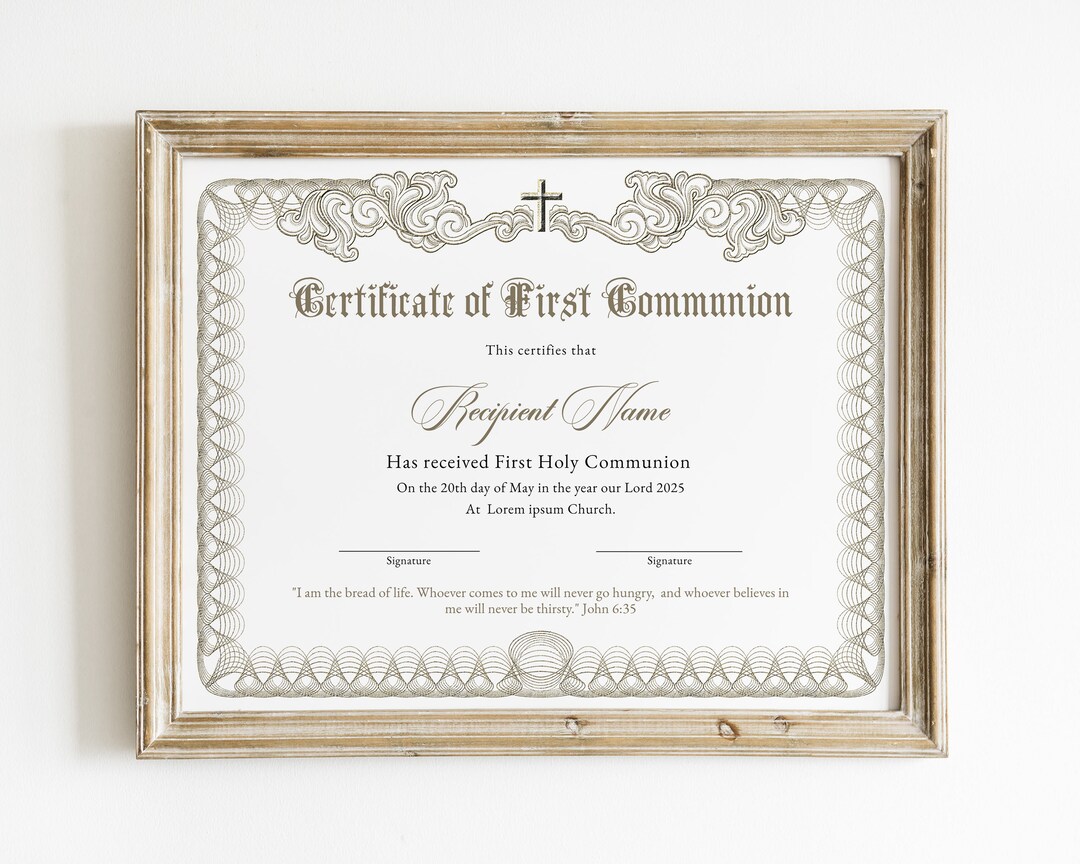 First Communion Certificate Template 11x8 5 Printable First Etsy