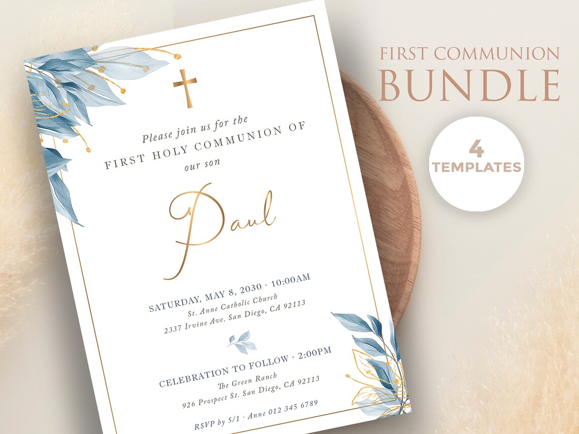 Boy First Communion Templates Set Holy Communion Invitation Etsy