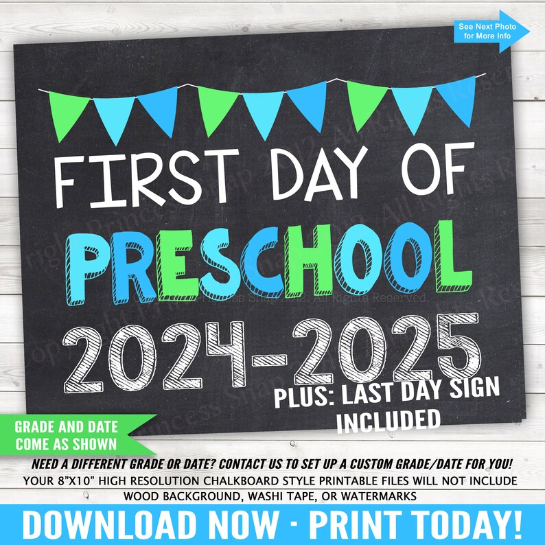 First and Last Day of Preschool 2024 2025 Preschool Photo Prop Etsy