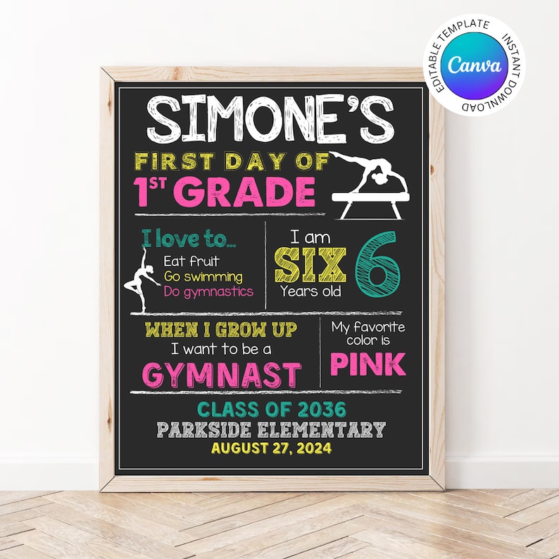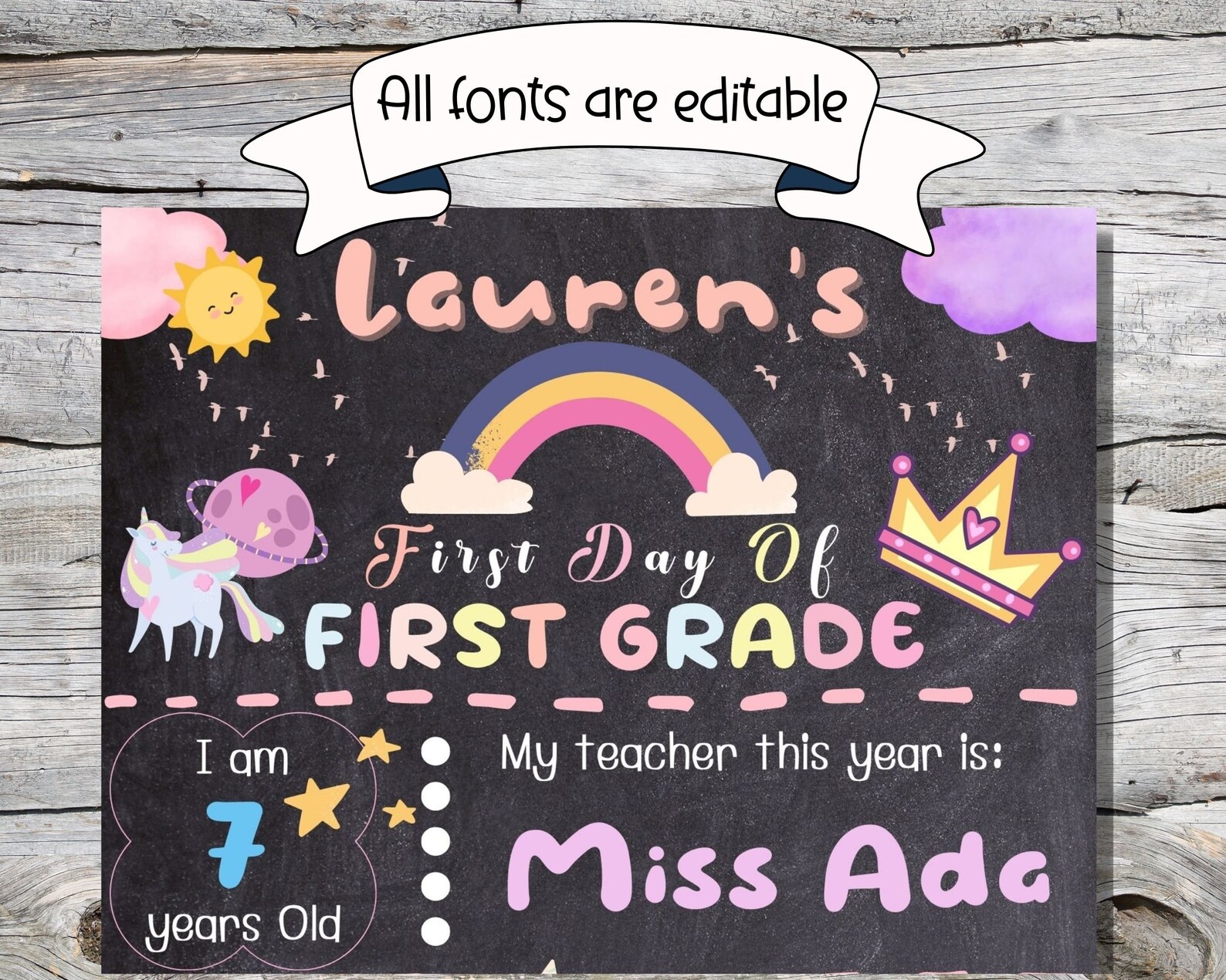 Editable First Day of School Sign Printable Chalkboard Back to School