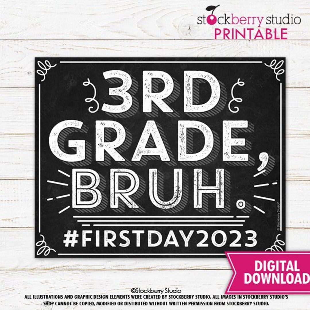 1st Day of 3rd Grade Sign Printable Bruh 2023 First Day Third Etsy