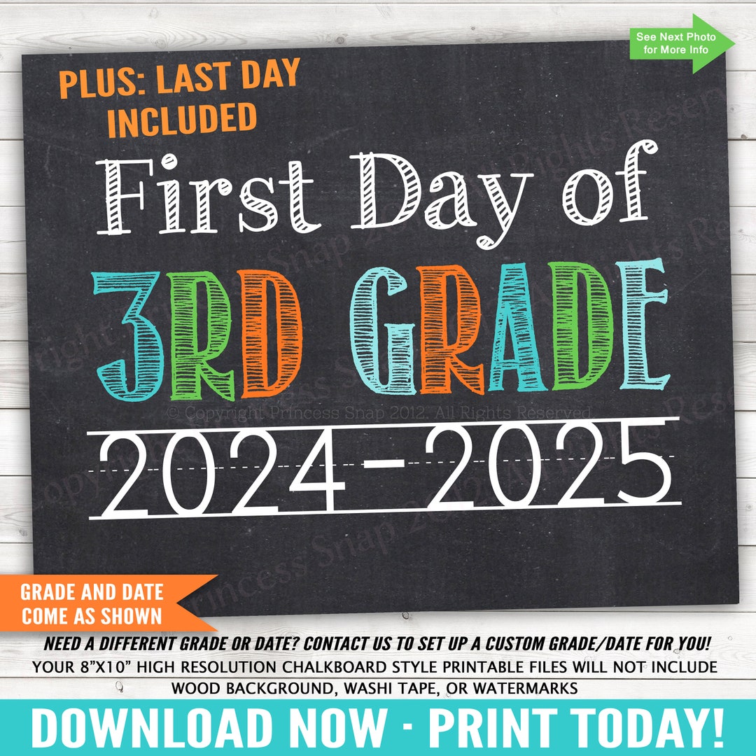 First Day of Third Grade 2024 Printable Sign 3rd Etsy