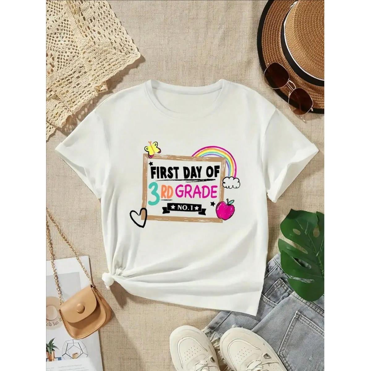 First Day Of Third Grade Print Girl #39 s Creative T Shirt Soft Elastic