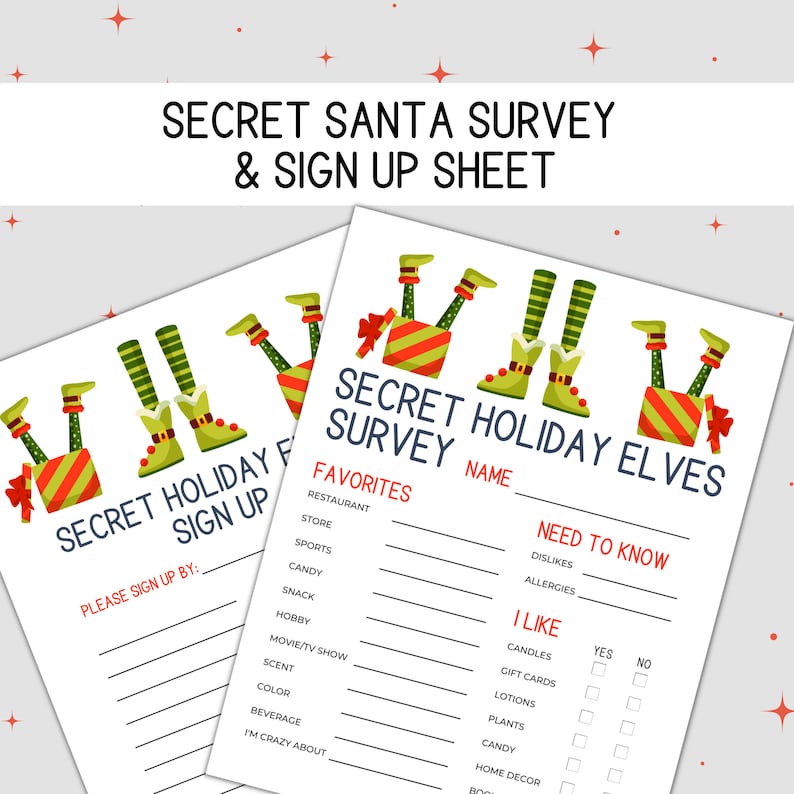 Holiday Elves Questionnaire Printable for Office Holiday Gift Exchange
